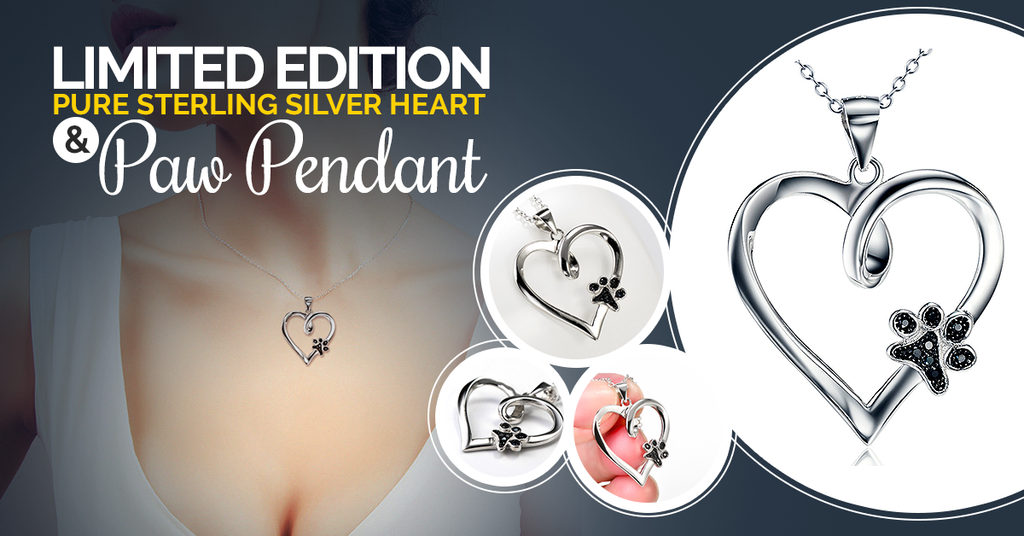 Limited Edition Pure Sterling Silver Heart & Paw Pendant Necklace