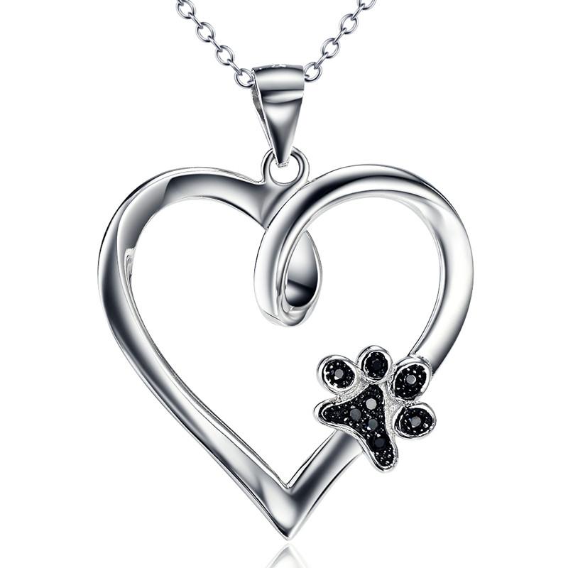 Sterling Silver Heart & Paw Pendant Necklace
