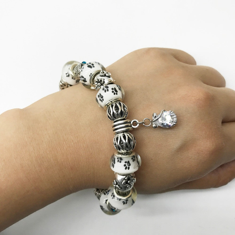 Limited Edition Pure Silver Dog Paw and Bone Charms Bracelet